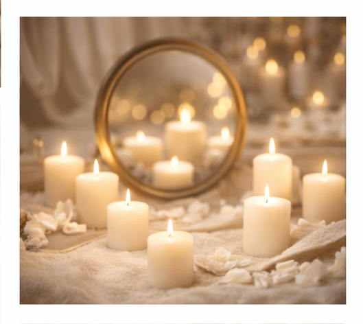 Les bougies scintillent et chaque détail du décor est pensé pour créer une atmosphère sacrée.